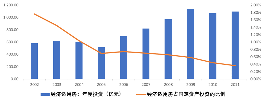 圖:過往年份經(jīng)濟適用房投資占固定資產(chǎn)投資比例
