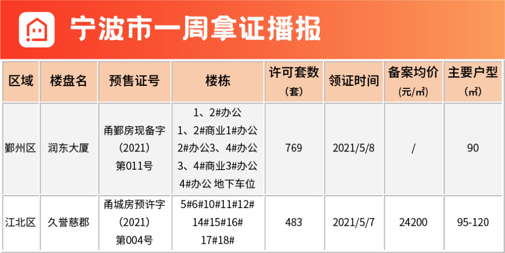上周寧波共2個樓盤取得預售證,入市房源共計1252套。