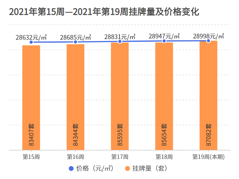 據(jù)諸葛找房寧波站數(shù)據(jù)統(tǒng)計,上周(5.3-5.9)寧波二手房掛牌房源量為87082套,相比上上周增加1428套,盡管市場冷意明顯,但是二手房價格仍然保持堅挺,上漲了0.18%,為28998元/平。